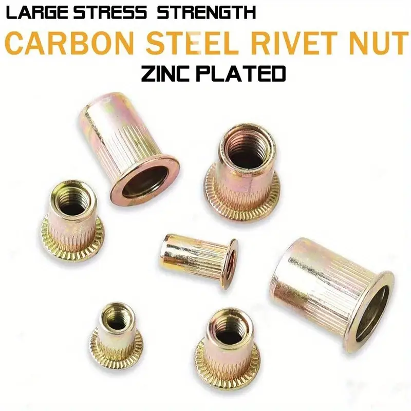 Постигнете сигурни, издръжливи закрепвания с RivetMaster™ , пълния комплект гайки с нитове с резба, идеален за широка гама от материали, включително стомана, пластмаса и фибростъкло. Изработени от висококачествена въглеродна стомана и поцинковани за устойчивост на корозия, тези гайки за нитове са идеални за сглобяване и закрепване в автомобилни и индустриални приложения.