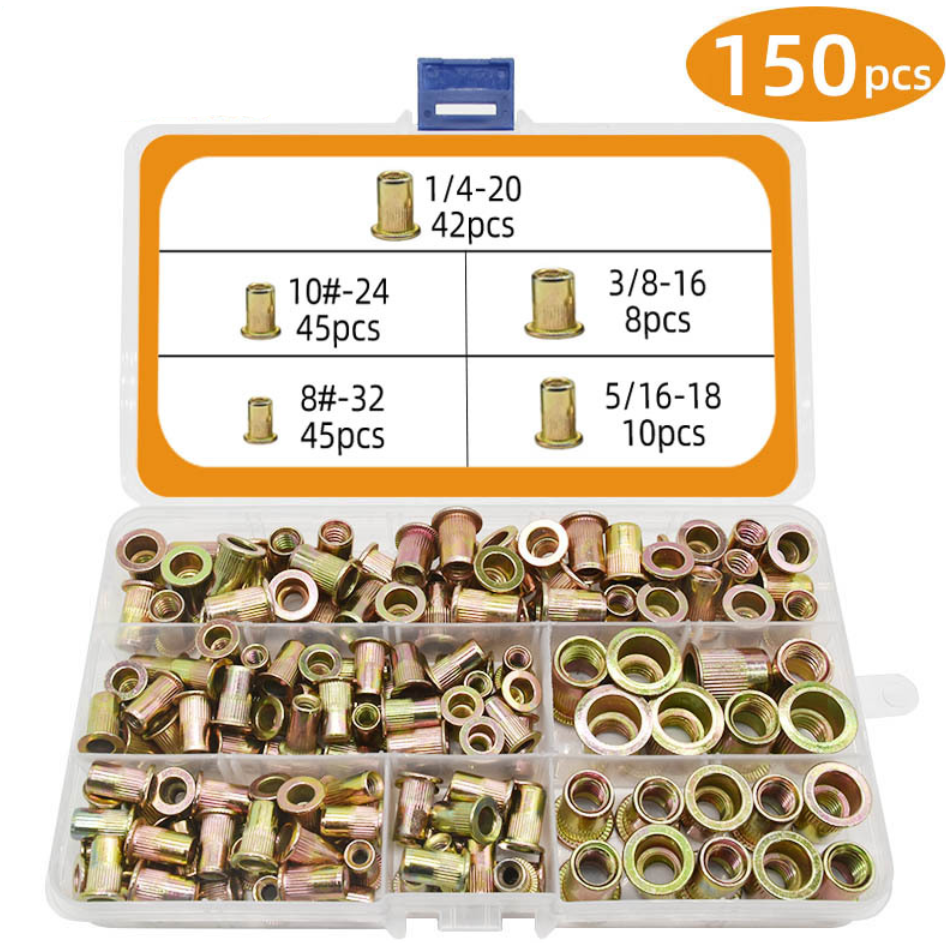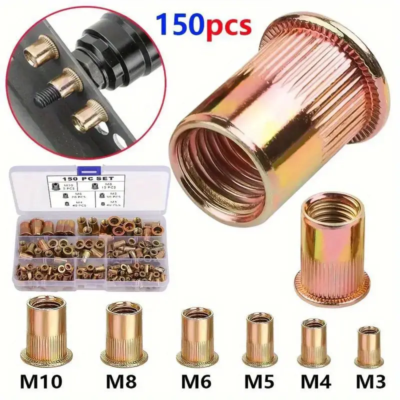 RivetMaster™ – Комплект от 150 броя резбови нитови гайки с плоска глава M3 M4 M5 M6 M8
