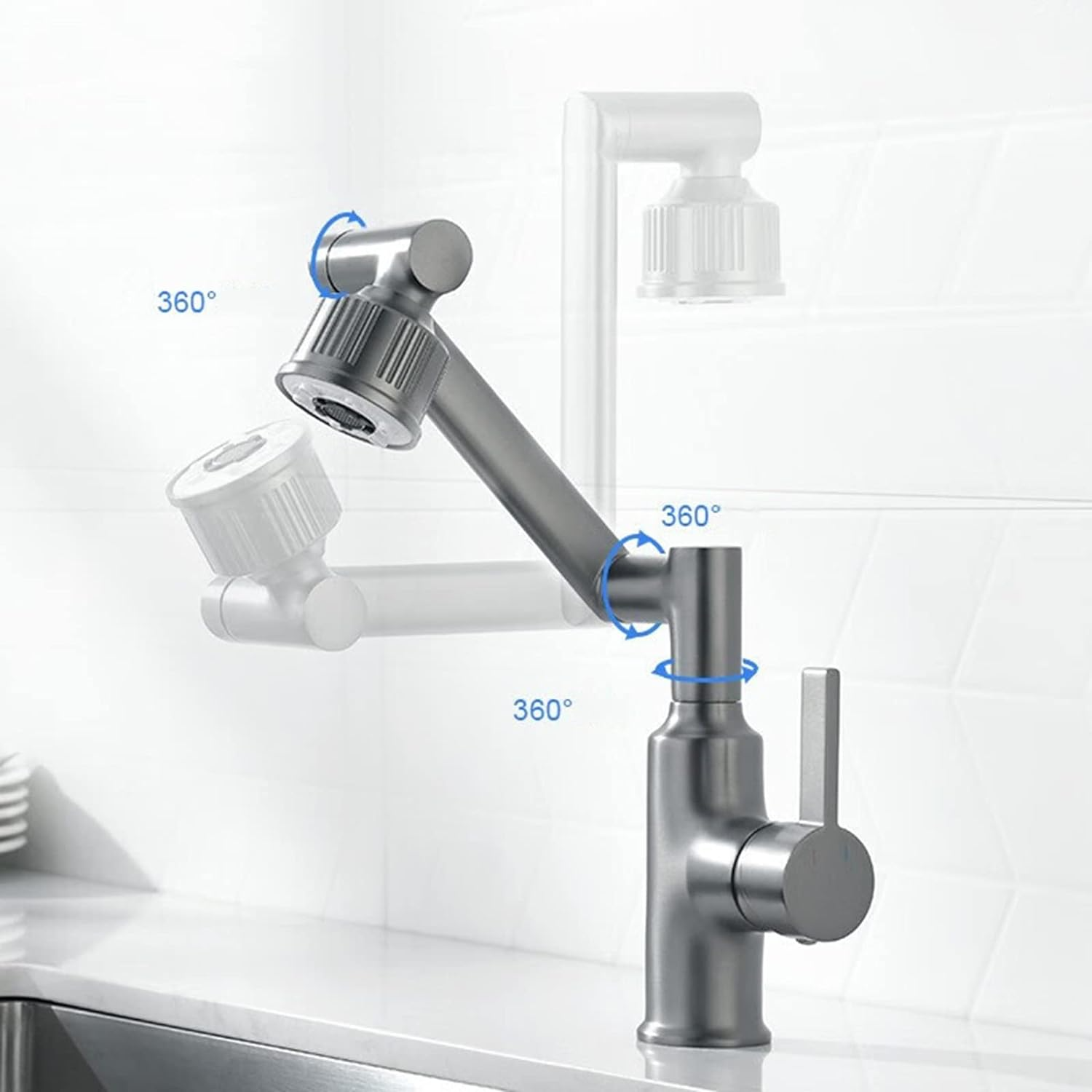 - Кранът се върти лесно на 360°, като е идеален за дълбоко почистване на корито и мивка, благодарение на своята гъвкавост.