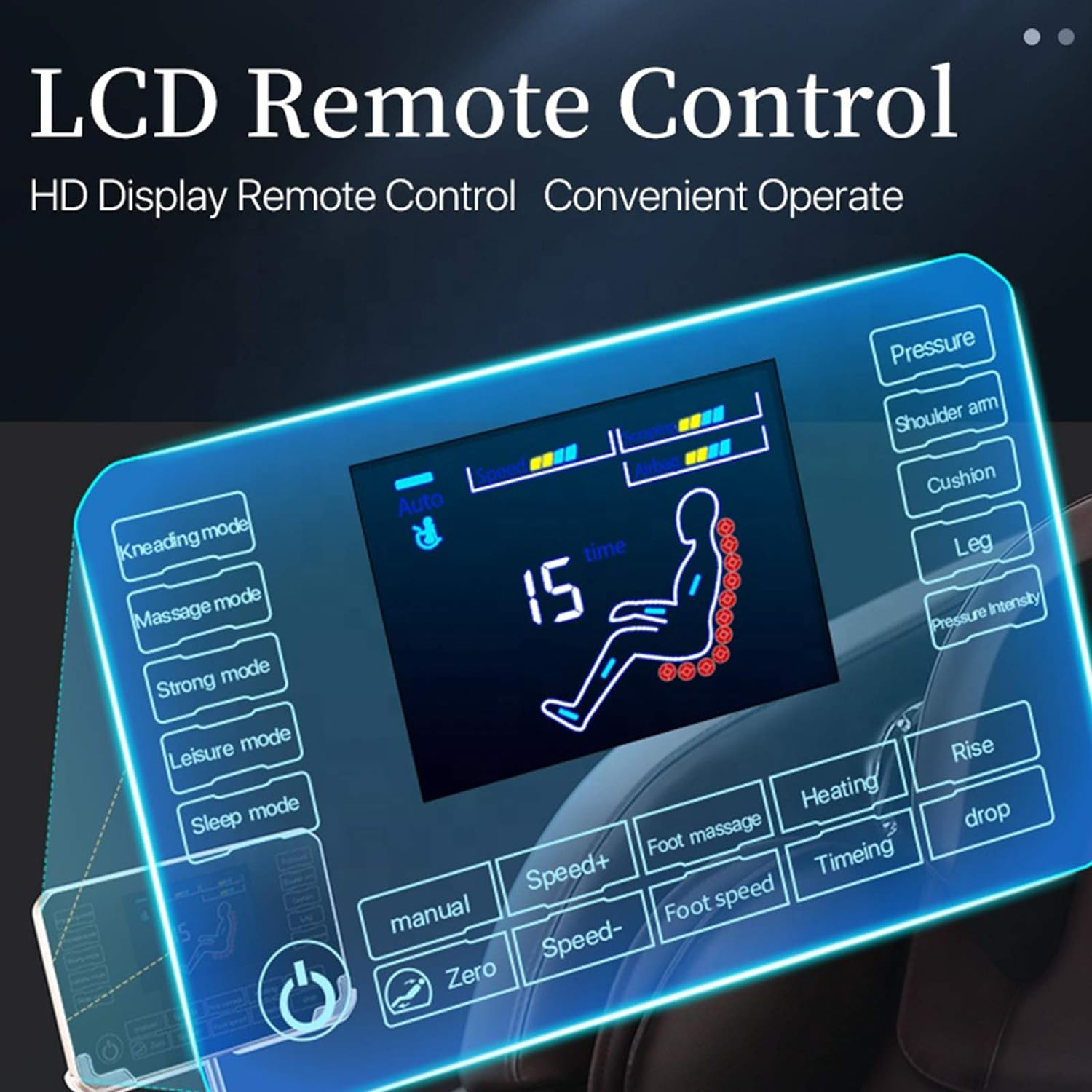 - Масажен стол с нулева гравитация - Симулира състоянието на нулева гравитация на Вселената, като прави височината на краката по-висока от височината на торса, а торсът и краката образуват ъгъл от 127°, така че цялото телесно тегло на масажиста да е равномерно разпределено , така че тялото да е в естествено и удобно състояние, а натискът върху тялото и ума да е намален.
