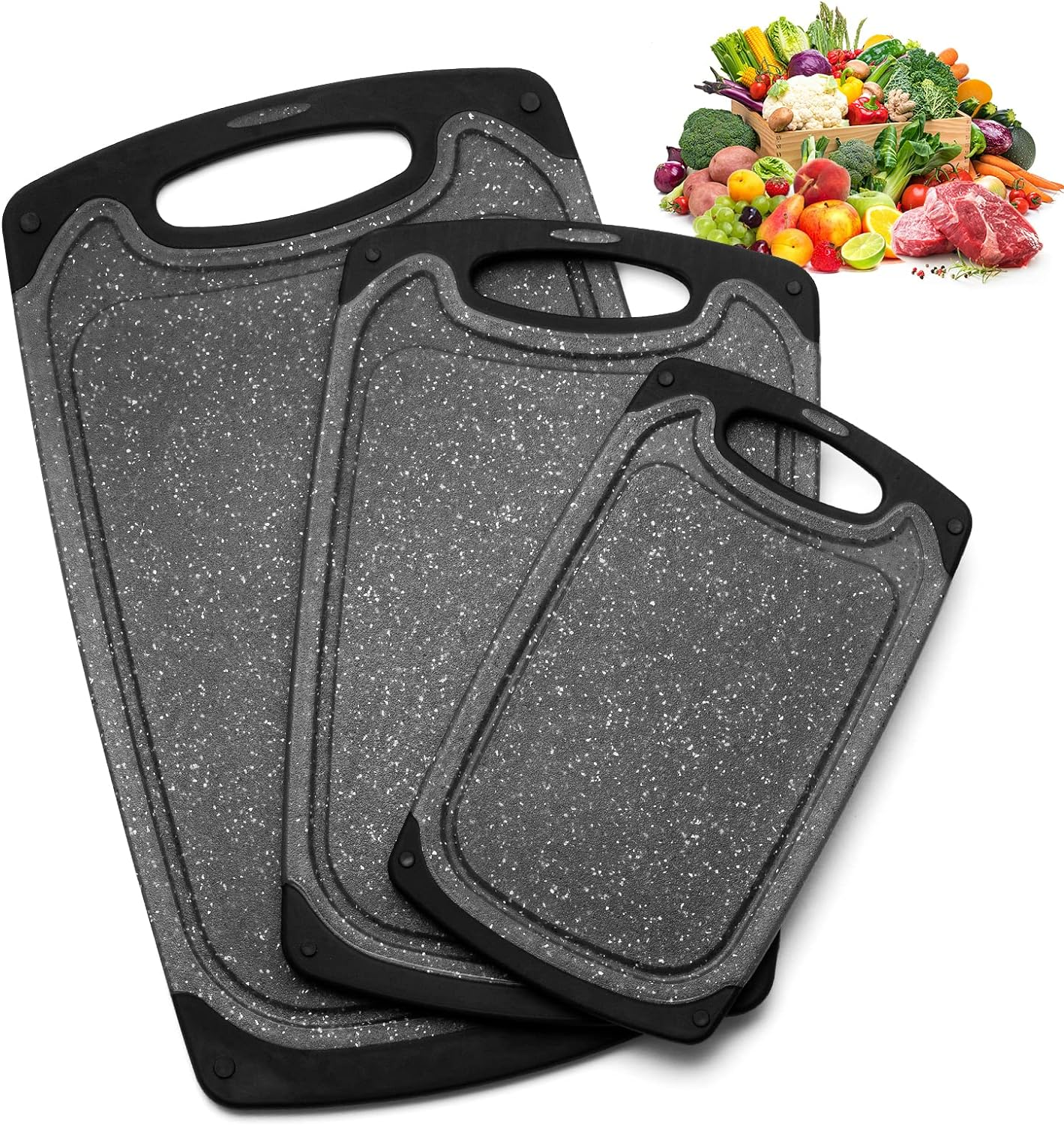Гаранция за удовлетворение: Ние ви помагаме при всякакви притеснения относно продукта или вашата поръчка. Елегантният мраморен дизайн носи качествено сетивно изживяване във вашата кухня. Тавата за рязане се използва от двете страни. Комплектът дъски за рязане от 3 части е чудесно допълнение към кухнята, ресторанта, бара, дейности на открито, барбекю, пикник, къмпинг или пътуване.