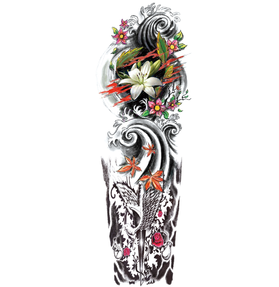 Отстранете прозрачния филм, нанесете татуировката върху чиста и суха кожа, попийте татуировката с мокра кърпа, отстранете хартията и оставете татуировката да изсъхне. Толкова е просто! [СПЕЦИАЛНО ВНИМАНИЕ] Дръжте татуировката върху кожата и поддържайте кожата суха. Татуировката не трябва да се навлажнява преди нанасяне; трябва да се навлажни само след нанасяне върху тялото, в противен случай няма да остане дълго върху кожата.