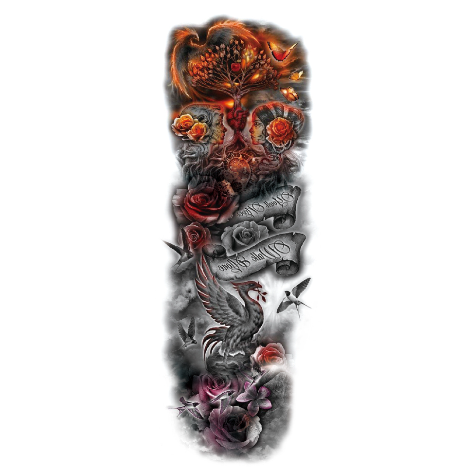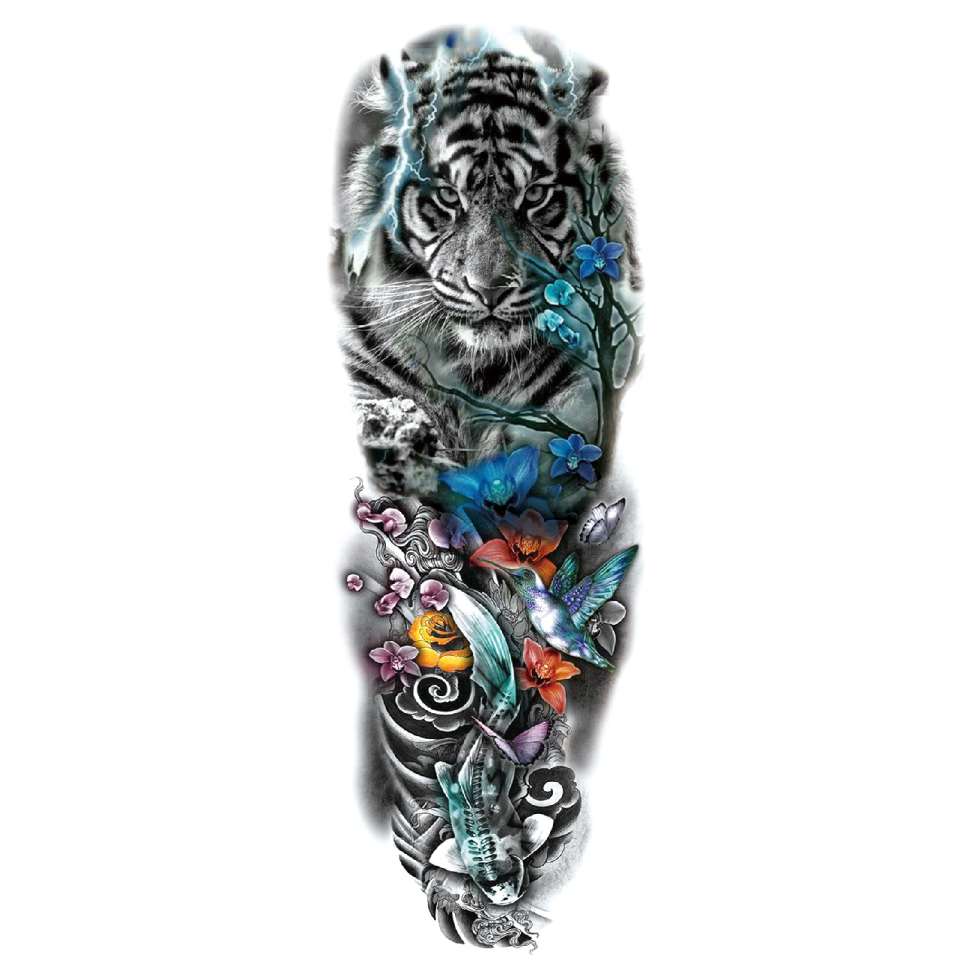 Тези стикери за временни татуировки са идеални за покриване на големи части от тялото с размери 17 см x 48 см. Комплектът включва 7 листа с размери 48 х 17 см. Можете да споделите тези татуировки със семейството и приятелите си.