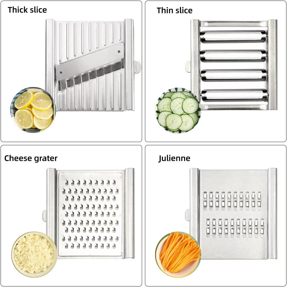 Широка употреба: Универсалната резачка за зеленчуци може да се използва като ренде, резачка и белачка. Нашата резачка за зеленчуци е подходяща за всички видове плодове, зеленчуци и храни, като лимони, сирене, джинджифил, портокали, шоколад и лук.