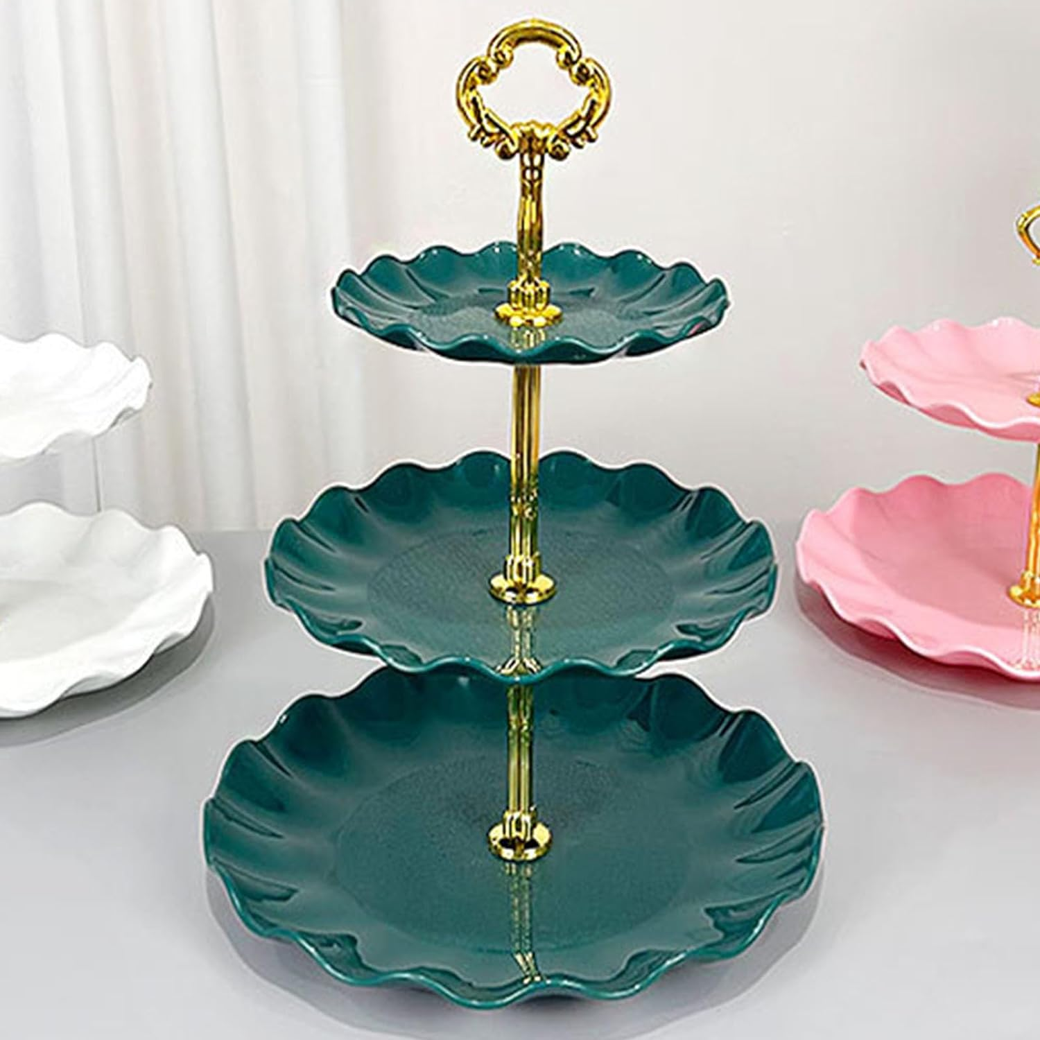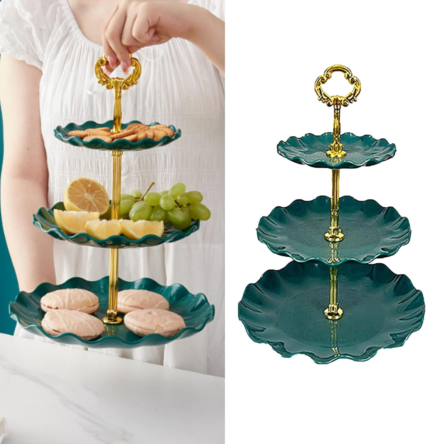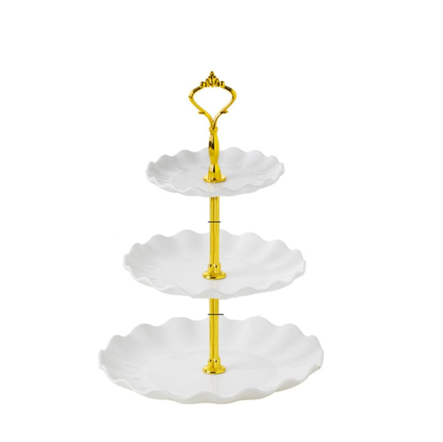 Щедро пространство на 3 нива: Отличаваща се с дизайн на три нива, тази стойка предлага достатъчно пространство за показване на различни лакомства. Всяко ниво може да бъде запълнено с бисквитки, закуски, плодове или всичко друго, което искате. Нивата са свързани чрез твърди стълбове и винтове за допълнителна стабилност.
