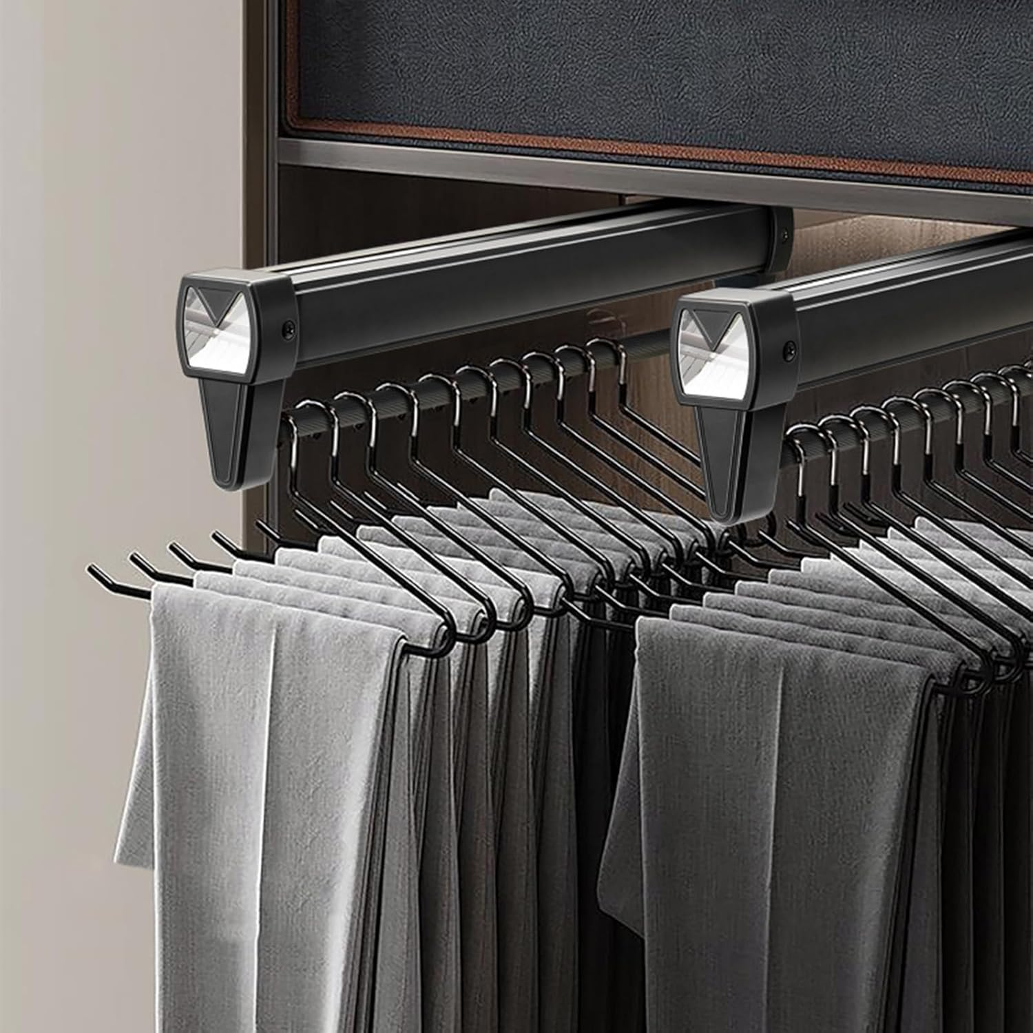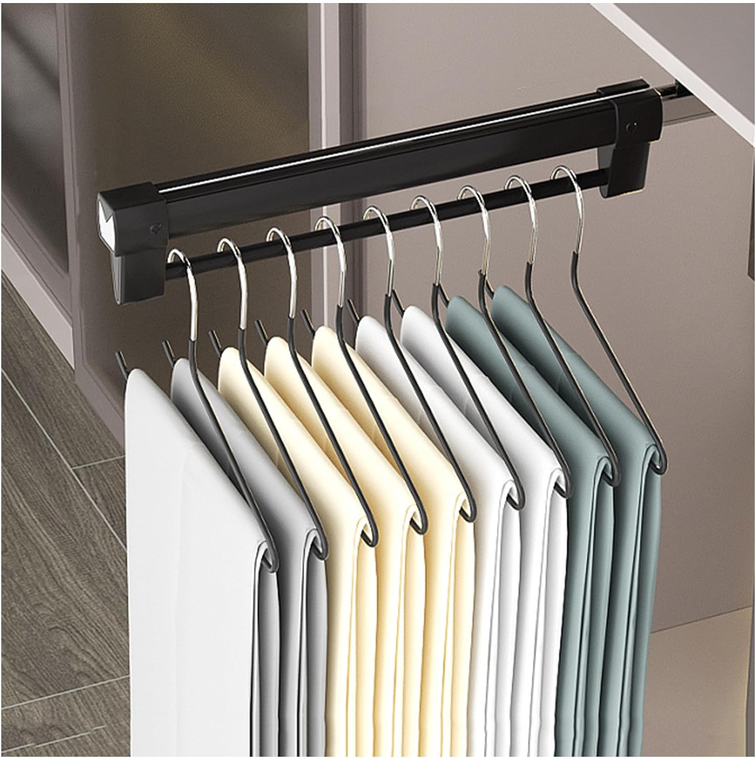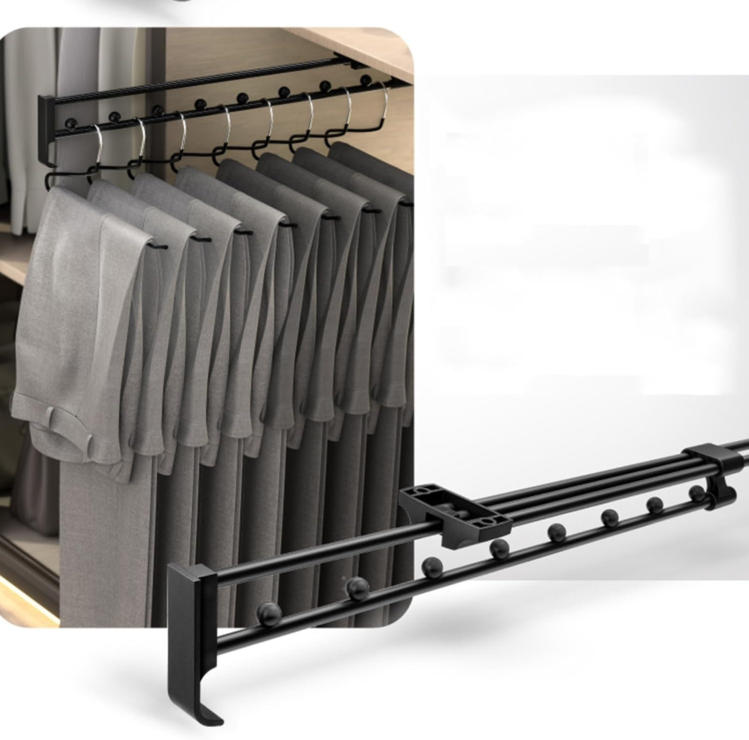 Мултифункционален органайзер: Релсовият държач от неръждаема стомана има многофункционален дизайн, който отговаря на различните нужди на съвременните домакинства. Идеален е за съхранение и организиране на дрехи, вратовръзки, шалове и панталони, поддържайки всичко подредено и на място.