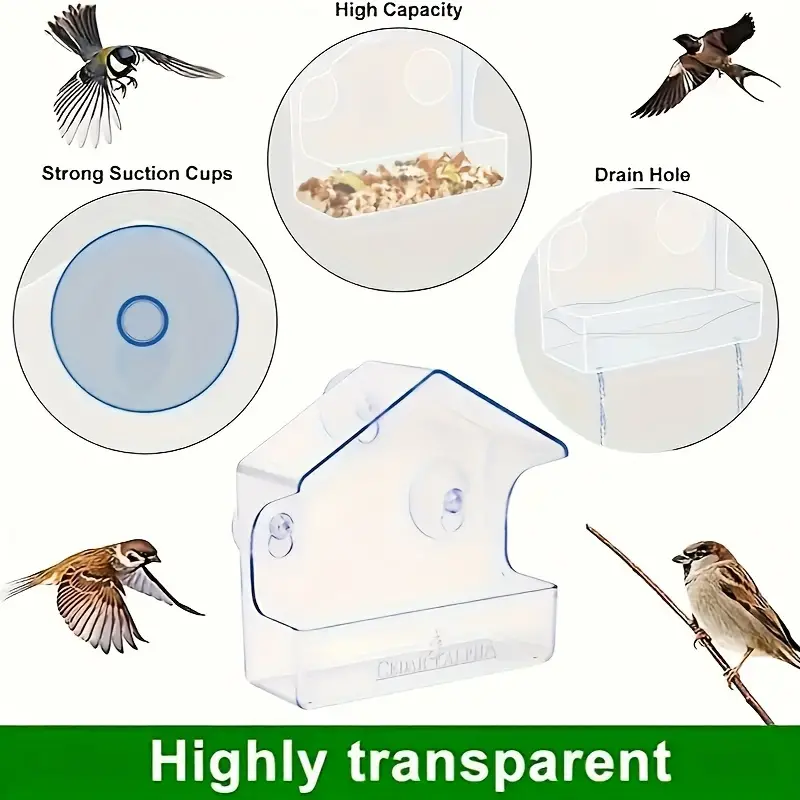 ЯСНА ВИДИМОСТ: Проектирана за ентусиасти на птици, прозрачната структура на хранилката позволява безпрепятствен изглед на посещаващите птици. Тази функция обогатява изживяването при наблюдение на птици, позволявайки на ентусиастите да наблюдават деликатните черти и поведение на своите крилати гости. Като стилно допълнение към всяка градина, хранилката съчетава функционалност с естетика, радвайки любителите на птиците и обогатявайки естествения пейзаж.