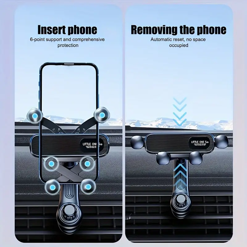 - Автоматично гравитационно заключване : Този държач за телефон, монтиран на вентилационния отвор на автомобила, може автоматично да заключва телефона ви с помощта на гравитацията. Разтегателните страни автоматично се регулират, за да държат телефона по-здраво, без да се притеснявате от удари или удари. Осигурява здрава и стабилна опора за предотвратяване на падане по време на шофиране.