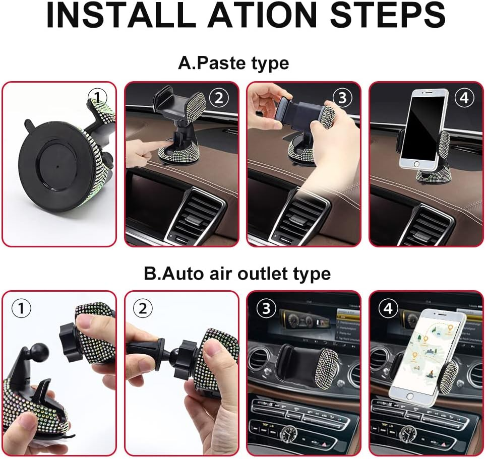 - Държачът за телефон Bling е изработен от висококачествена ABS гума, пластмаса и кристални кристали. Висококачествени искрящи кристали с блясък, идеални за момичета/дами. Това е идеален подарък за семейство и приятелка!