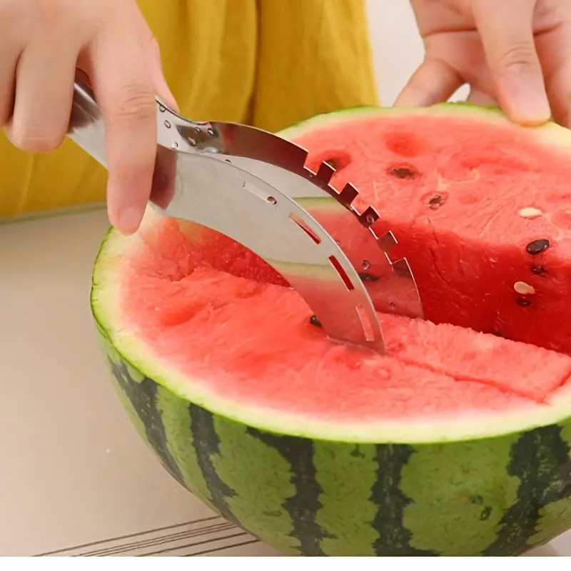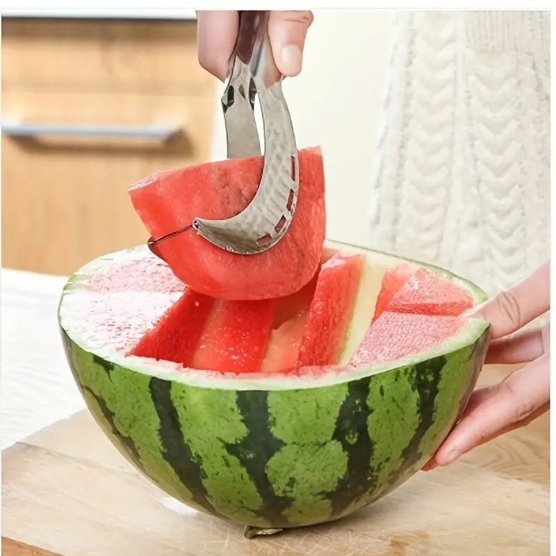 🍉【Създаден да издържи】: Изработена от издръжлива неръждаема стомана, нашата резачка за дини е проектирана да издържа на интензивна употреба без огъване или изкривяване.