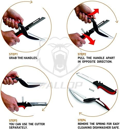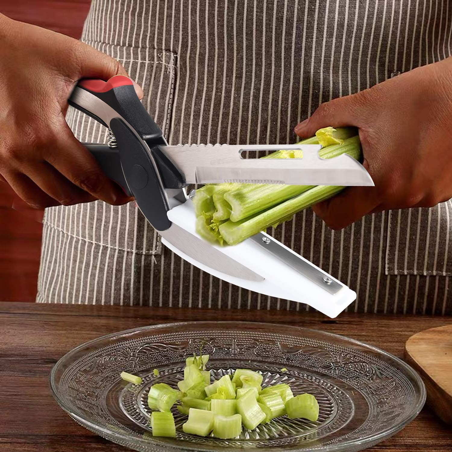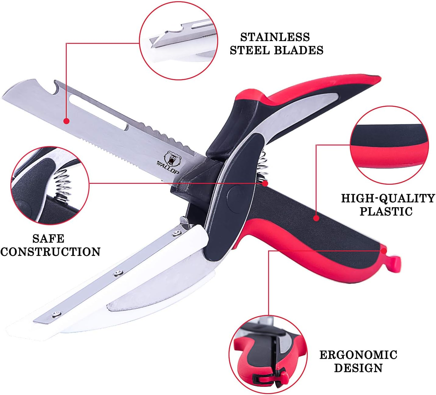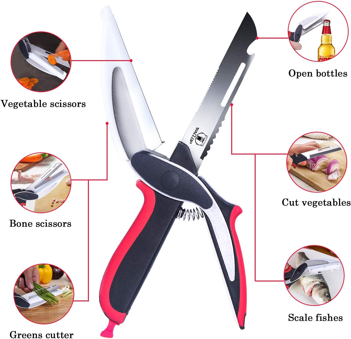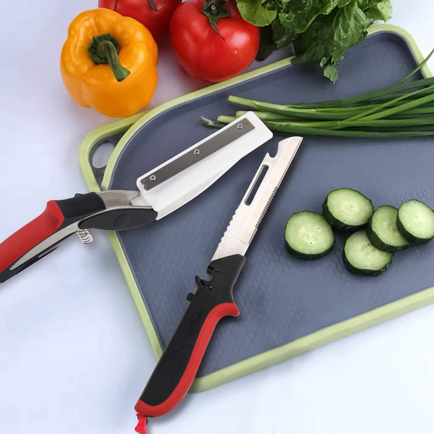 Многофункционален кухненски прибор: Рязането ще бъде лесно и бързо с тази кулинарна джаджа. Кухненската ножица може да се разгъне, за да се превърне в резачка, слайсер, чопър, почистващ препарат, отварачка за бутилки и дъска за рязане, идеална за ежедневна употреба у дома и пикник на открито, като барбекю и др.
