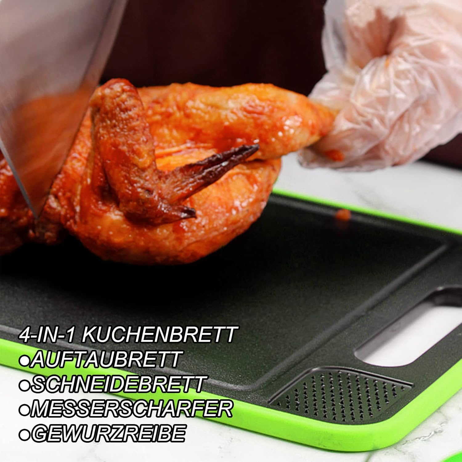 Безопасно рязане и допълнителни функции : От друга страна, пластмасовият нож има универсална режеща повърхност. Неплъзгащият се гумен ръб осигурява сигурен захват. Забележка: Тази кухненска джаджа 4 в 1 има вградено острие за ножове и ренде за подправки, което е по-удобно за вашето готвене.