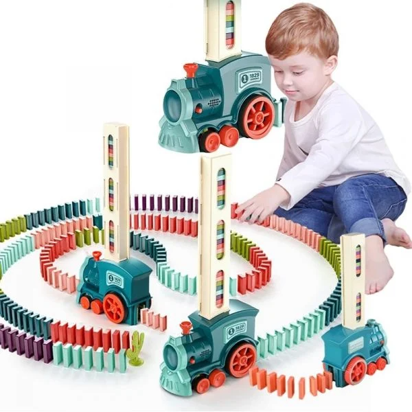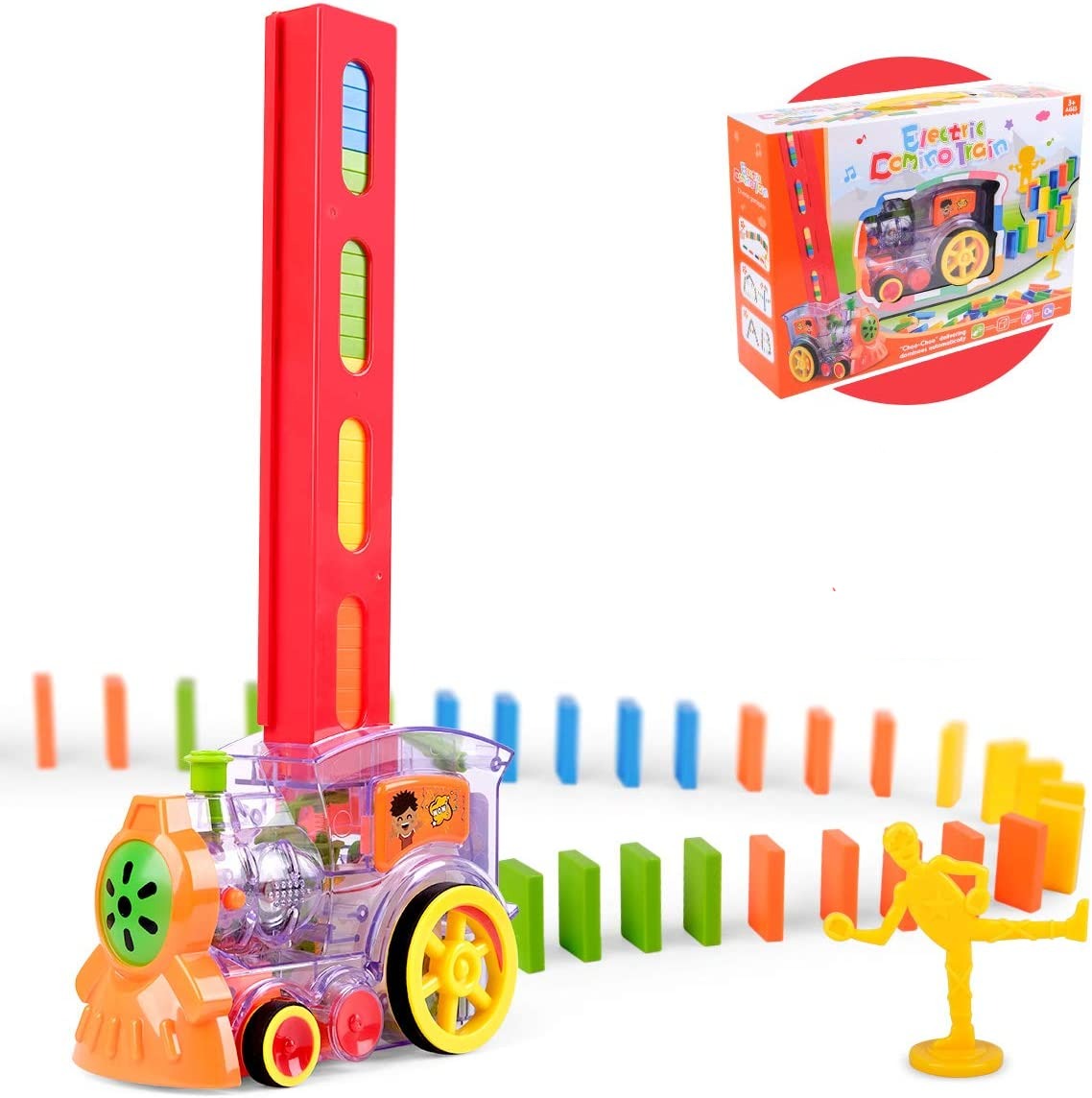 - ИГРАЧКА ЗА ЕМУЛАЦИЯ НА ВЛАК НА ДОМИНО: Наистина симулирайте движението на влак, работейки със звук и музика, автоматично поставяне на домино. Подредете ги всички, след това бутнете един и гледайте верижния ефект на доминото, което се събаря като състезание.