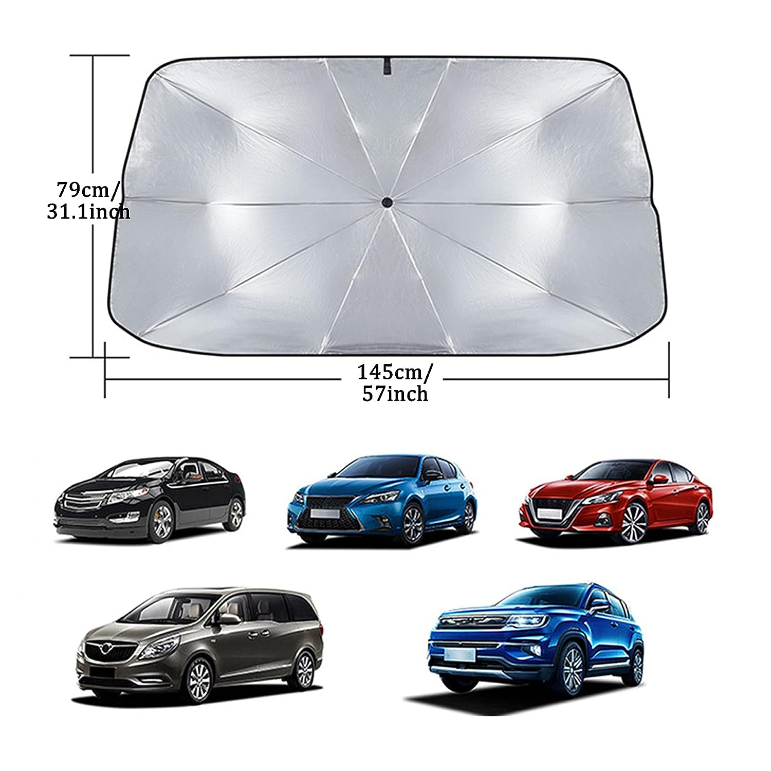 ★【Подходящ за повечето превозни средства】Нашият сенник е с размери 145x79 см / 57 * 31 инча или 125 x 65 см / 49 x 25,6 инча, който идеално пасва на повечето автомобили, седани, SUV и MPV. ЗАБЕЛЕЖКА: Моля, потвърдете правилния размер на предното стъкло на вашия автомобил, преди да закупите.
