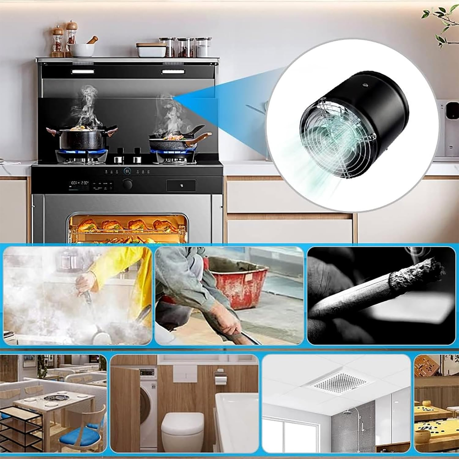 - 【Широко приложение】 Този кухненски вентилационен вентилатор е идеален избор за създаване на ефективна HVAC система в кухни, спални, офиси, мазета, складове, гаражи и други зони, които изискват непрекъсната или редовна вентилация.